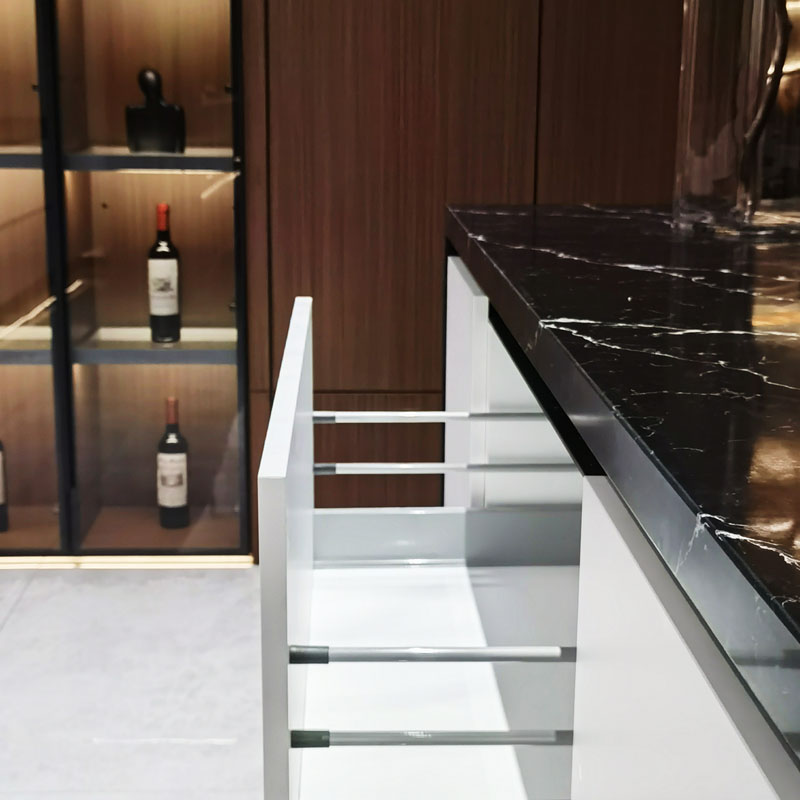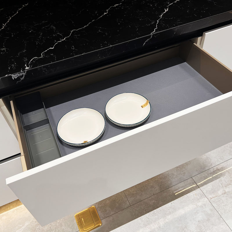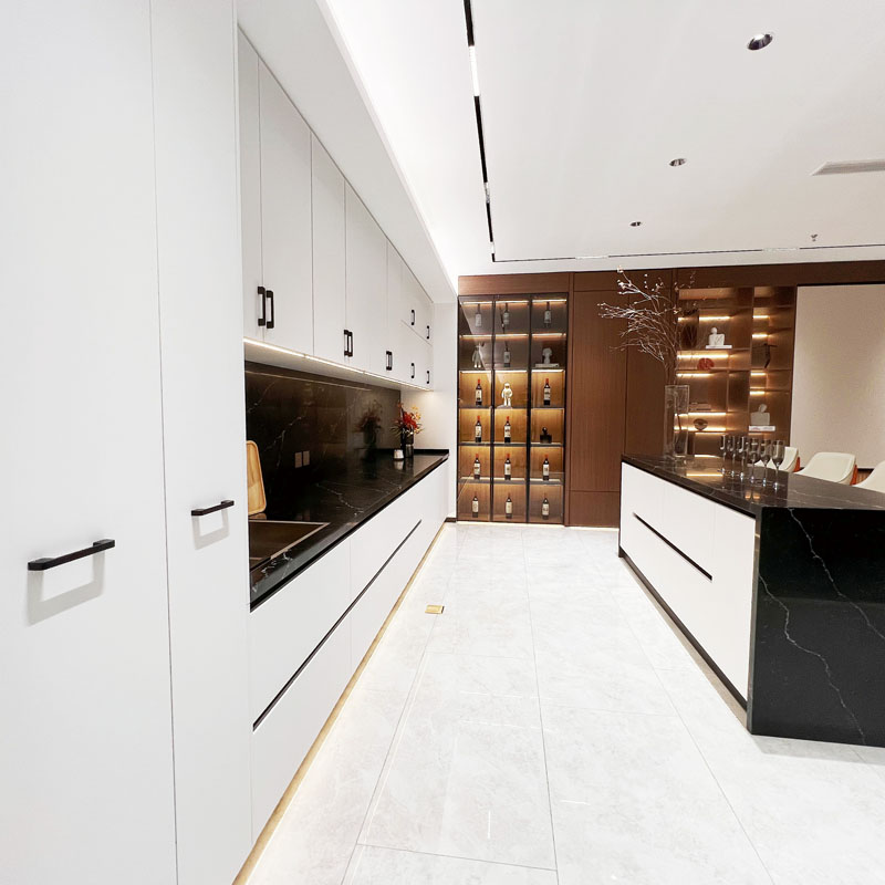 Tato řada moderních bílých kuchyňských skříněk používá povrchovou úpravu šetrnou k pokožce. Základní materiál panelů je vyroben z kvalitního borovicového dřeva jako suroviny s německou dováženou špičkovou inteligentní automatickou výrobní linkou. Používáme pouze lepidlo MDI (4-difenylmethandiisokyanát); fenyl byl během vysokoteplotního výrobního procesu těkavý.