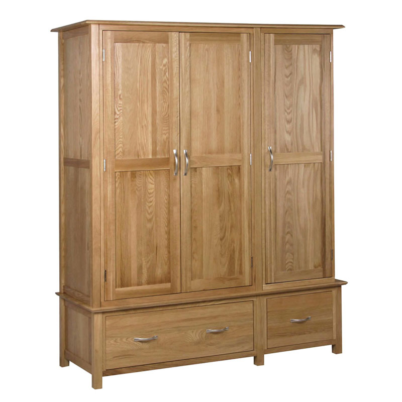 Moderní dubová třídveřová šatní skříň se 2 zásuvkami